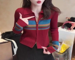NT$1350正紅條紋撞色親膚針織款拉鏈衫 顯白神器 彈性透氣不黏身 修身顯比例 甜酷感滿分 搭裙搭褲都好看詳情 - 加絨保暖堆堆帽NT$999