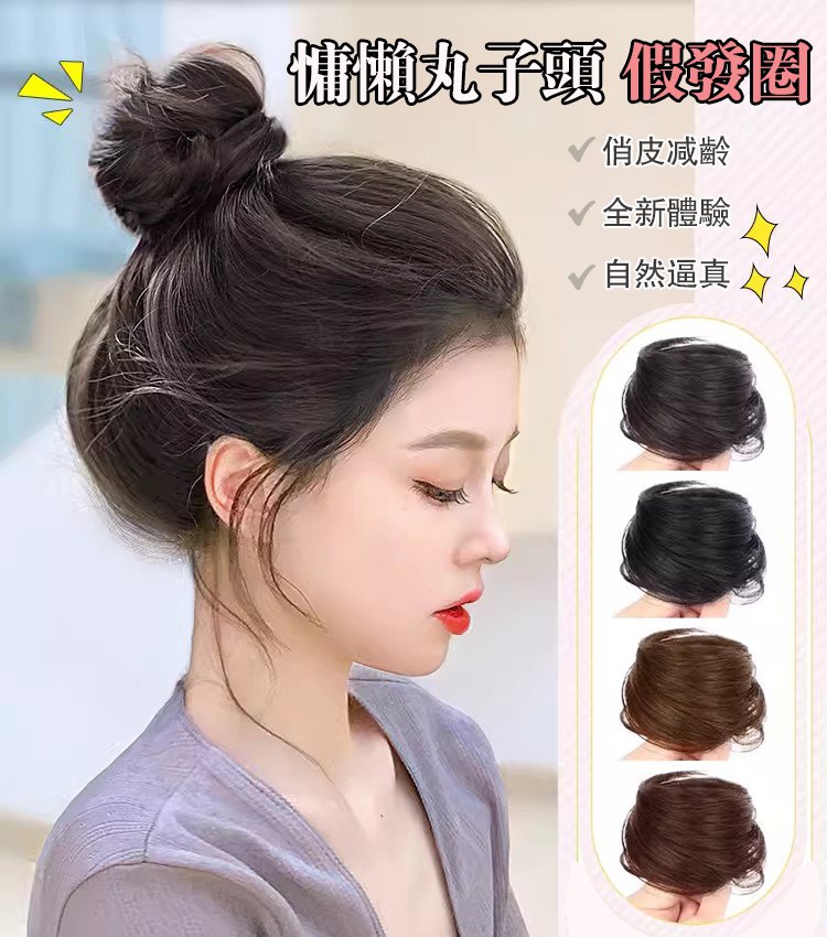 全真髮蓬鬆丸子頭假髮圈,讓你省去麻煩的髮型造型,告別扁平頭!隨手一扎,增加髮量,輕鬆造就迷人髮型!簡單方便好看,氣質加倍~