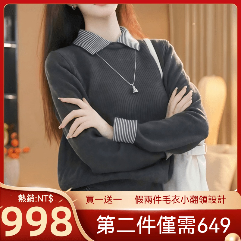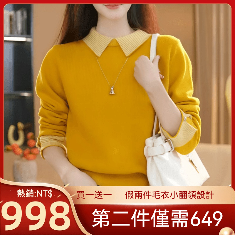 秋冬內搭天花板來了 假兩件毛衣的小翻領設計超精緻 軟糯加厚針織抗風親膚 黃色款黃皮閉眼沖 日常通勤都能穿!