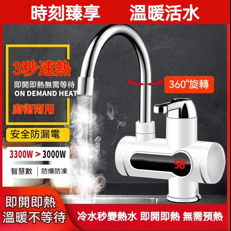 【速熱水龍頭】冷水秒變熱水,開啟溫暖生活! 即開即熱,無需預熱,360°可旋轉設計滿足多角度使用 安全防漏電,廚房衛浴皆適用,安裝簡便,節省水電又省心
