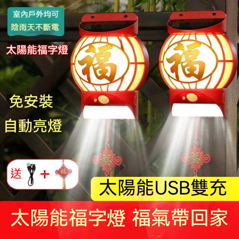 馬年把福氣回家 太陽能福字燈免安裝 陰雨天不斷電 自動亮燈 紅金福字襯年味 室內外都能用